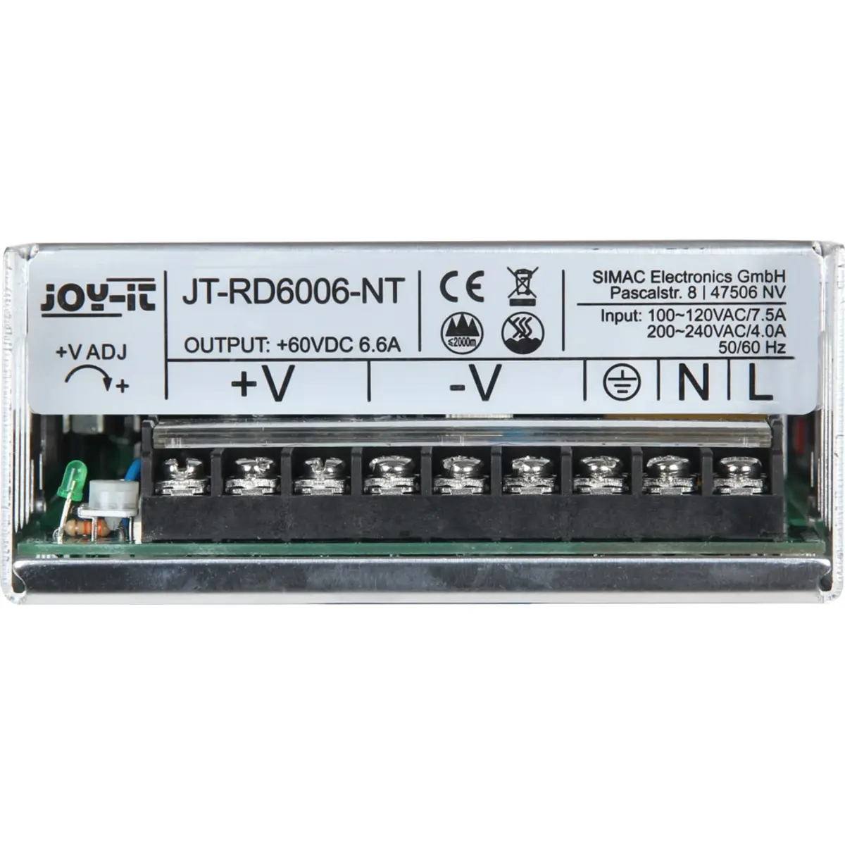 Esta fonte de alimentação industrial converte uma tensão de rede (115VAC ou 230VAC) para a tensão DC necessária para a fonte de alimentação de laboratório JT-RD6006.