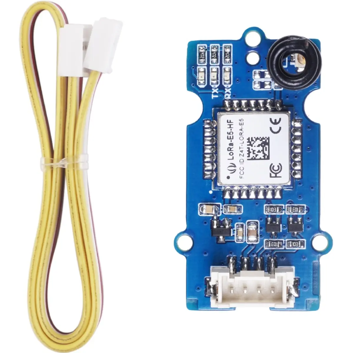 O módulo Seeed Studio Grove LoRa-E5 (STM32WLE5JC) é um módulo de comunicação por ondas de rádio (wireless) fácil de usar, que oferece suporte ao protocolo LoRaWAN nas frequência EU868 e US915. Também suporta modulações (G)FSK, BPSK, (G)MSK e LoRa.