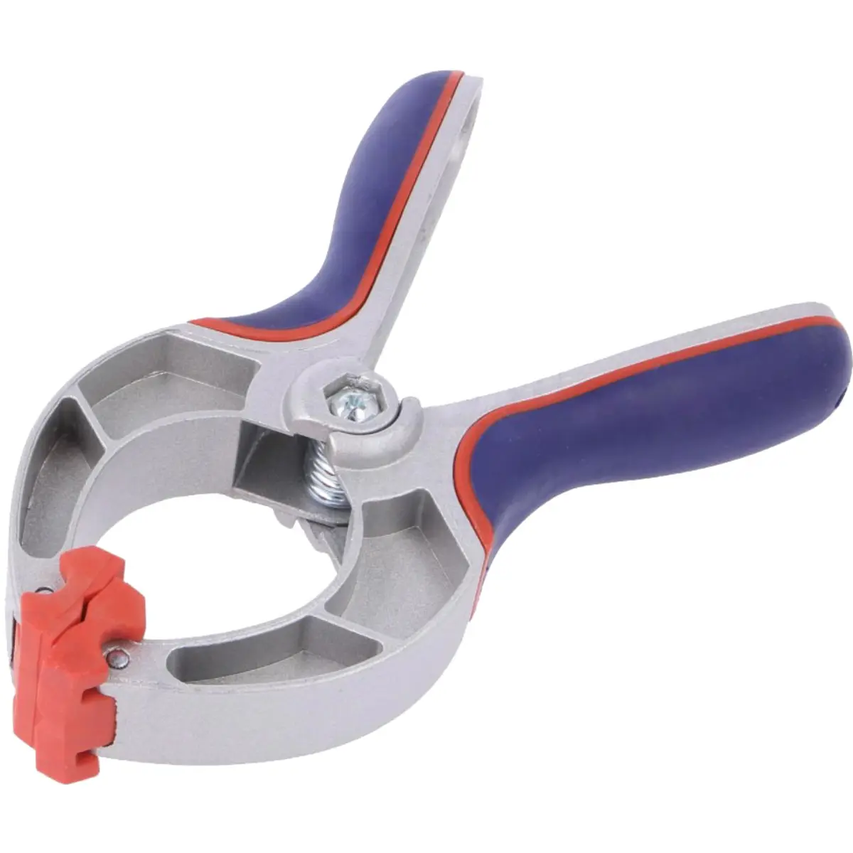 Grampo de mola com estrutura em alumínio e borracha, abertura máxima de 51 mm. Este acessório de fixação é feito com alumínio e borracha, oferecendo uma solução para montagem que mantém as peças no lugar com precisão. Ideal para aplicações técnicas que exigem ajuste estável e fixação confiável.