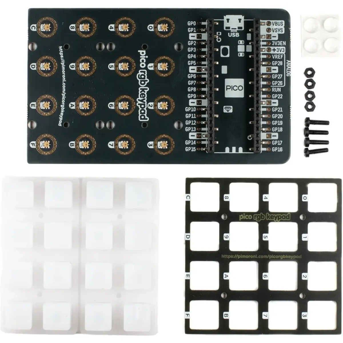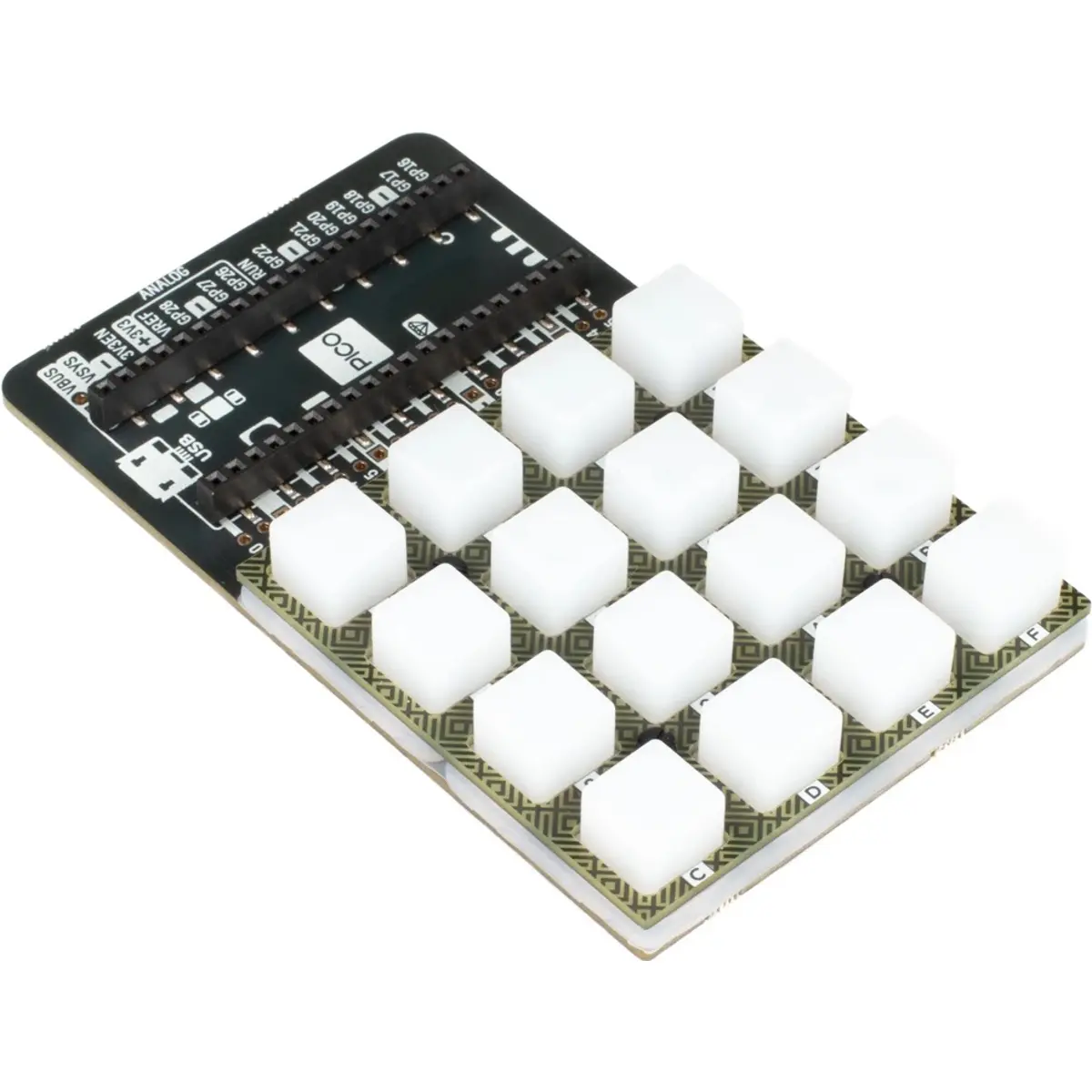 Instale o seu Raspberry Pi Pico neste módulo de 16 teclas, iluminadas independentemente por LEDs RGB e controle os seus projetos com estilo - perfeito para criar um dispositivo de entrada USB personalizado! Por exemplo um teclado macro ou um controlador de midi personalizado.