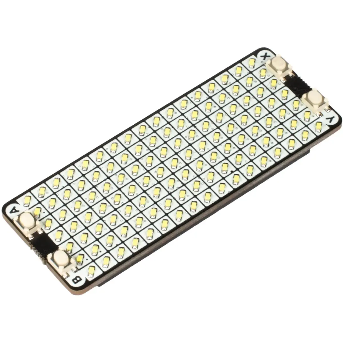 O Pico Scroll Pack incorpora 119 LEDs brancos perfeitamente posicionados numa matriz 17x7, junto com quatro botões de pressão para interagir com as suas invenções baseadas no Raspberry Pi Pico.