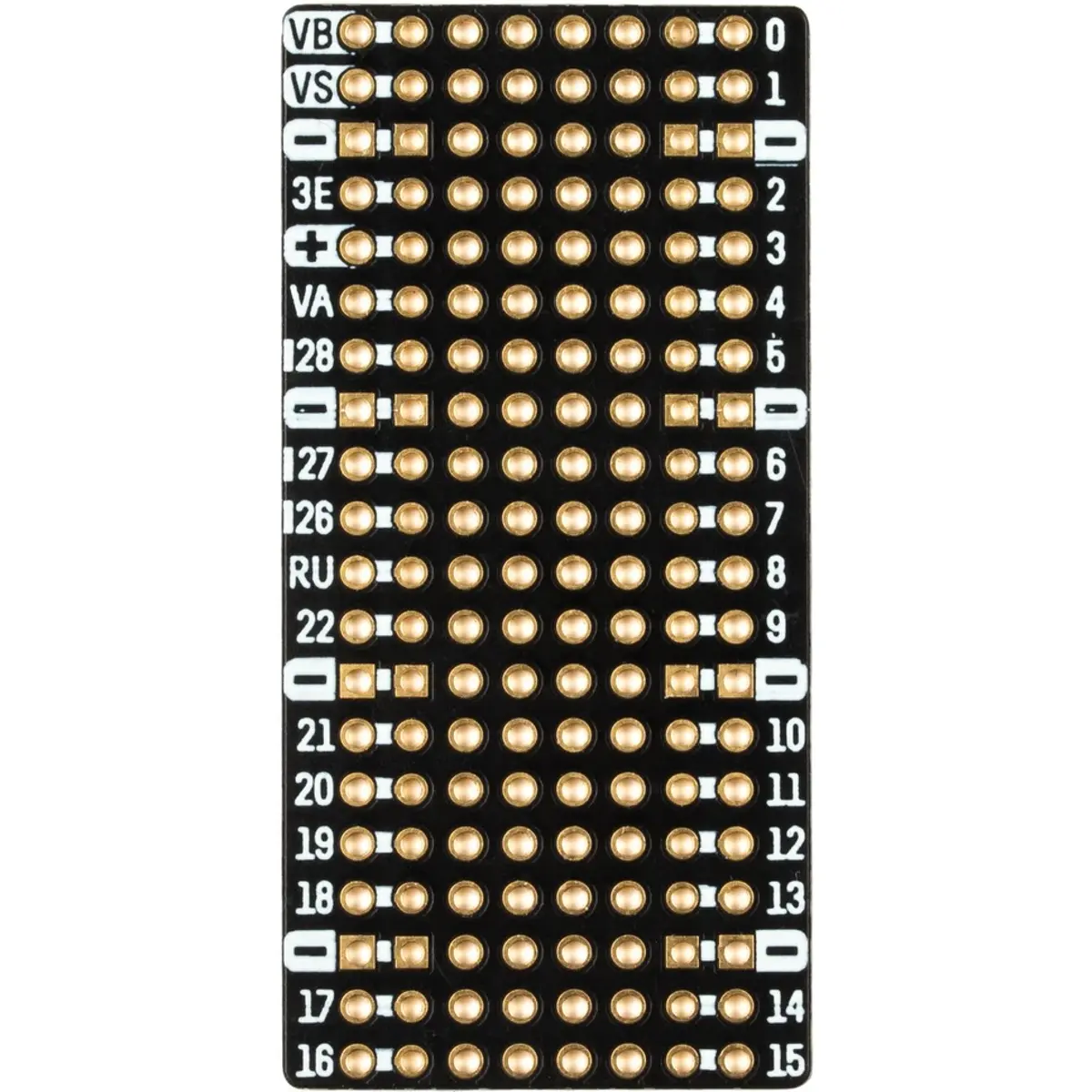 - 120 furos espaçados de 2,54 mm (matriz 6x20) para soldar fios e componentes electrónicos;