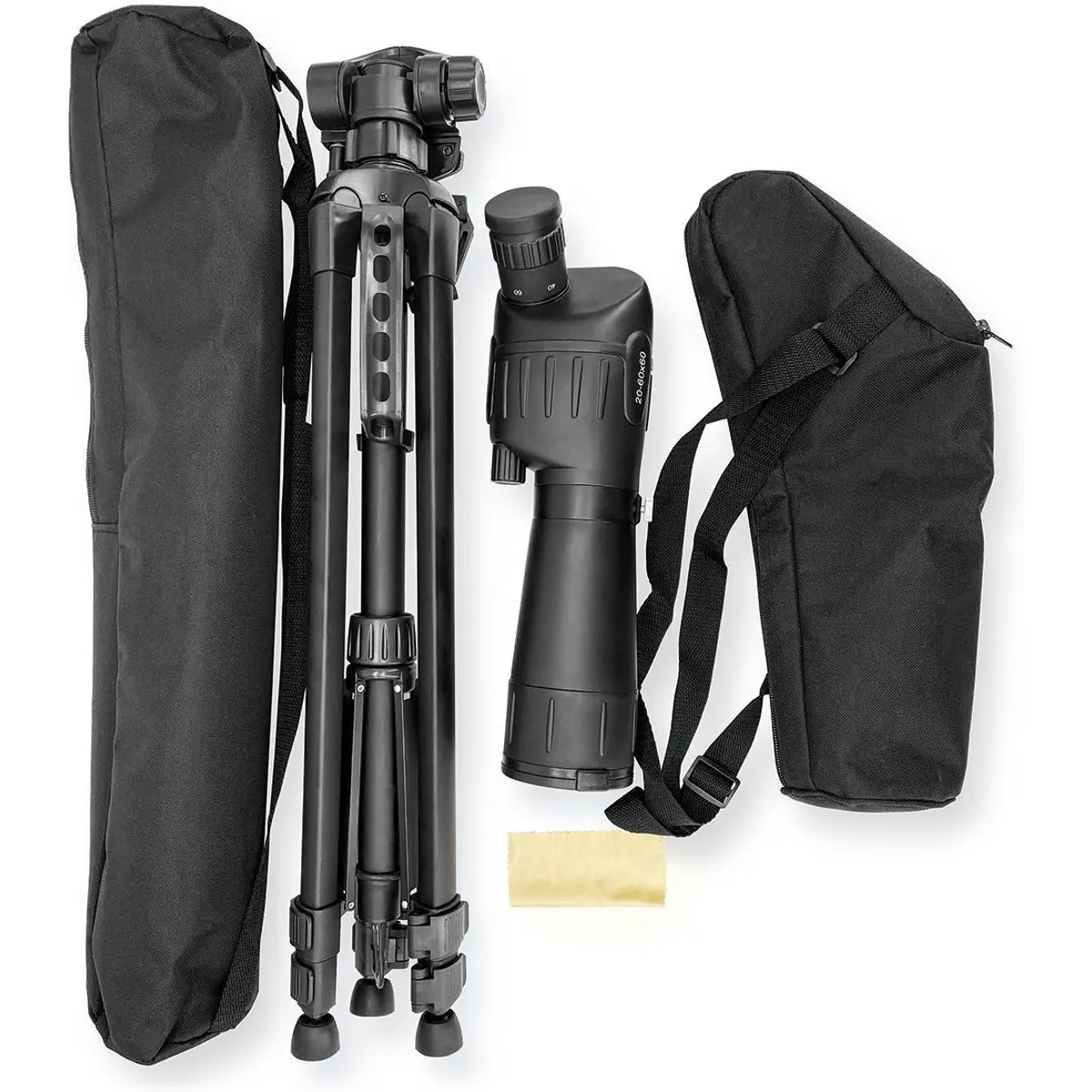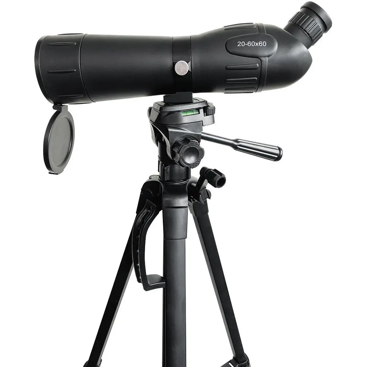 Telescópio terrestre com ampliação ajustável de 20-60x e objetiva de 60 mm, oferecendo campo de visão de 38 m a 1.000 m a 1 km. Compatível com uso diurno, com relevo ocular de 13 mm para utilizadores de óculos e ajuste de dioptria para acomodar diferentes visões. Lente azul e bolsa de proteção incluídas para transporte. Ideal para viagens e caminhadas, permitindo observar objetos fixos e animais com boa claridade em condições de luz adequadas.