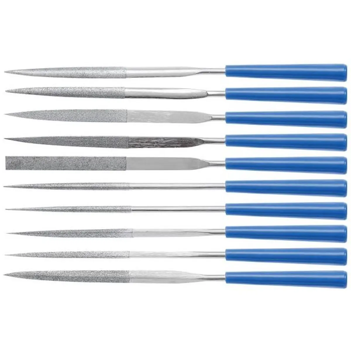 Limas para acabamento de precisão em materiais duros. 10 vários formatos especiais. Para uso em joalheria, relojoaria e escultura.