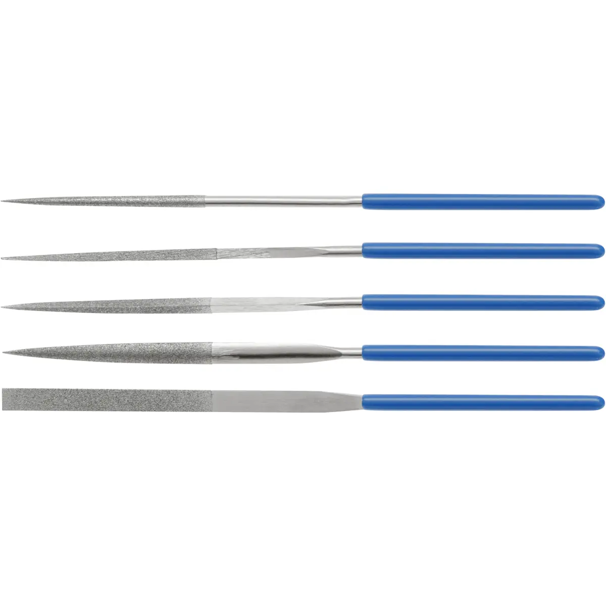 Limas diamantadas para acabamento de precisão em materiais duros. 5 vários formatos especiais. Para uso em joalheria, relojoaria e escultura.