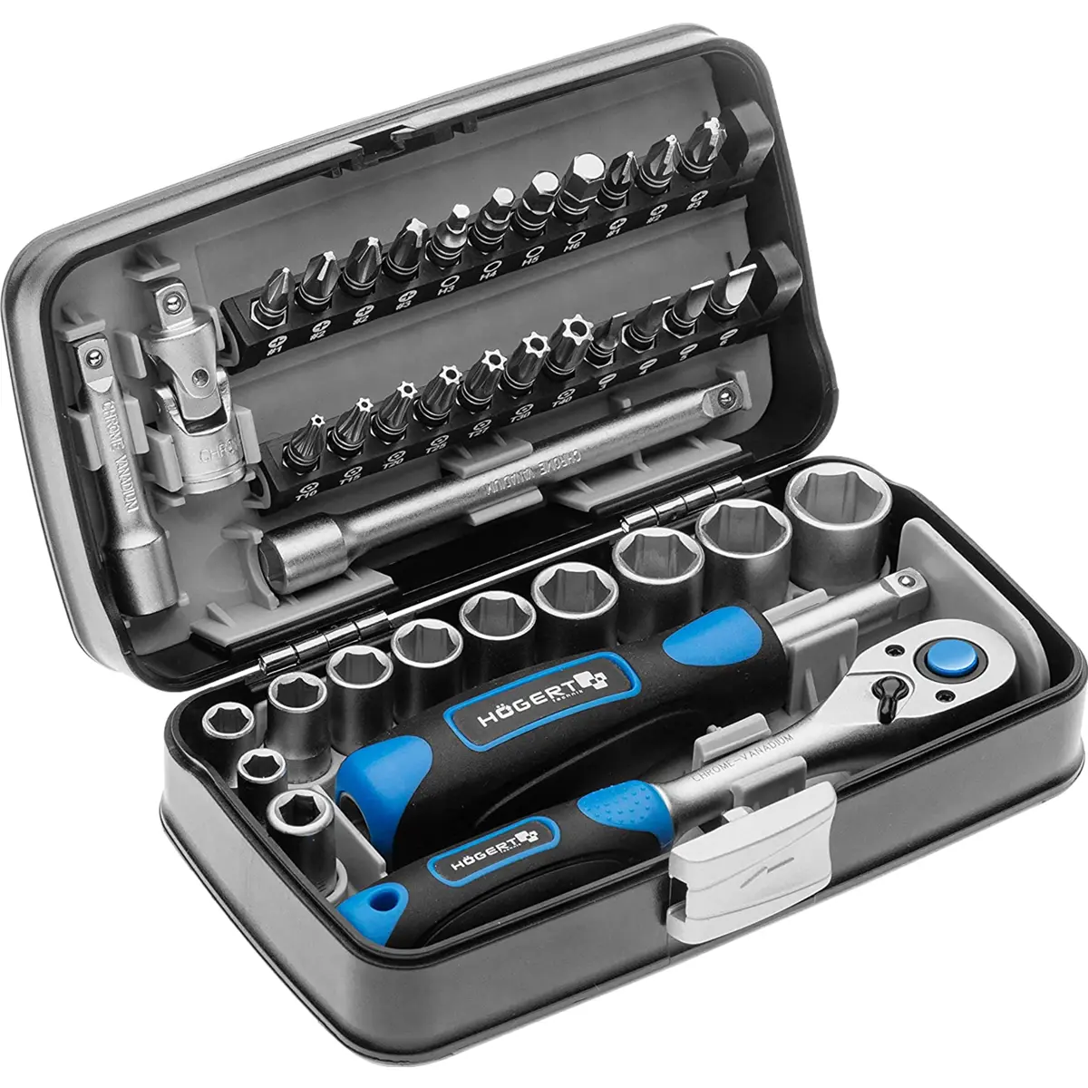 Högert HT1R462 - Conjunto de chaves de caixa e bits - 38 peças