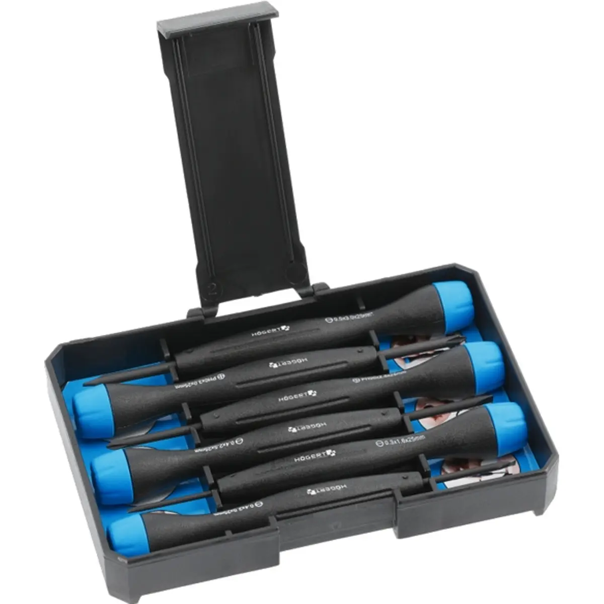 - Chaves de fendas de precisão: 0,5 x 3,0 x 25 mm, 0,4 x 2,5 x 25 mm, 0,4 x 2,0 x 25 mm, 0,3 x 1,6 x 25 mm