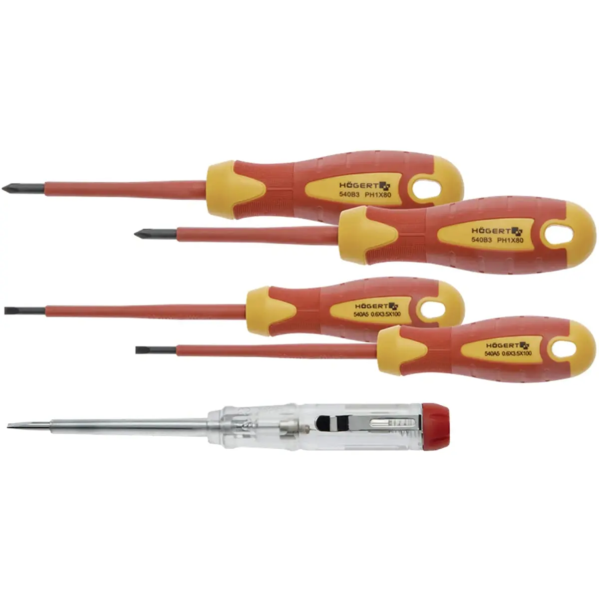 Högert HT1S994 - Conjunto de 4 chaves de fendas + busca-pólos com isolamento 1000V