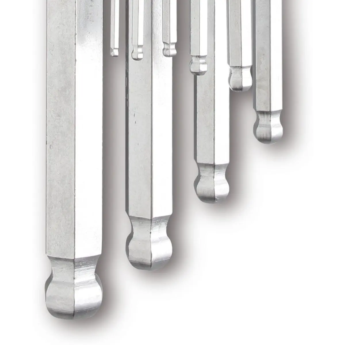 Conjunto de chaves hexagonais com ponta esférica, em aço cromo-vanádio de elevada qualidade, projetado para acesso difícil graças a uma margem de 30° de entrada. Inclui nove tamanhos (1,5–10 mm), proporcionando encaixes firmes em parafusos hexagonais em espaços estreitos. Ideal para montagem, reparação e manutenção em mecânica e carpintaria, com durabilidade, resistência à corrosão e fiabilidade na fixação em ambientes exigentes.