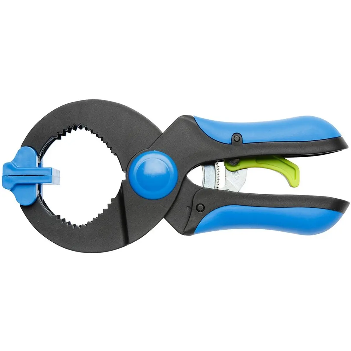 Grampo de aperto rápido com abertura máxima de 37 mm e comprimento de 150 mm, fabricado em plástico, com cabos revestidos de borracha. Pesa 109 g e é adequado para fixações rápidas em montagens e reparações.