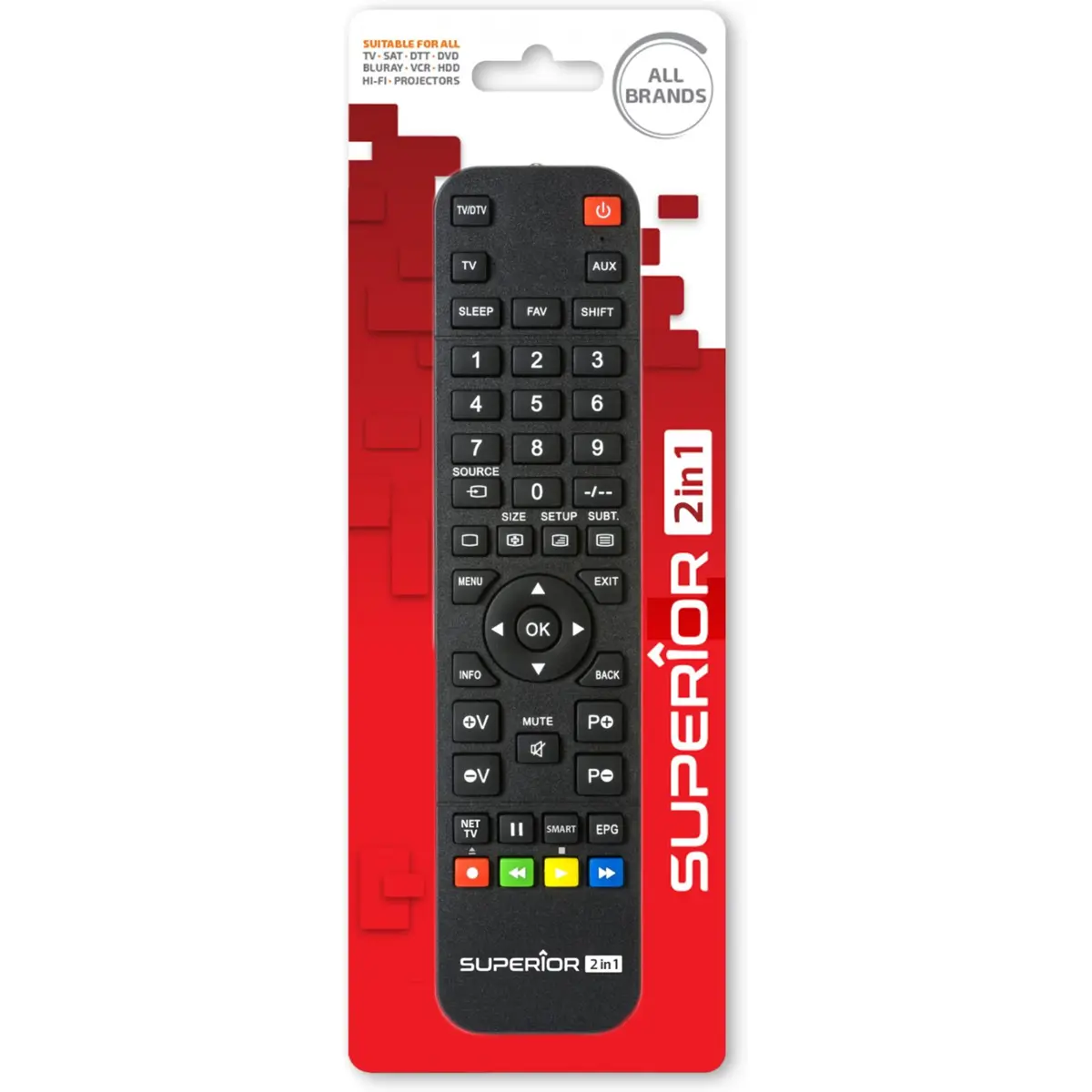 O Superior Light 2in1 é um telecomando universal programável por PC, concebido para o setor profissional. Compatível com mais de 260.000 modelos de dispositivos áudio e vídeo, permite controlar até dois aparelhos diferentes com total precisão. A sua programação é extremamente rápida e simples — basta selecionar a marca e o modelo do equipamento no software dedicado.