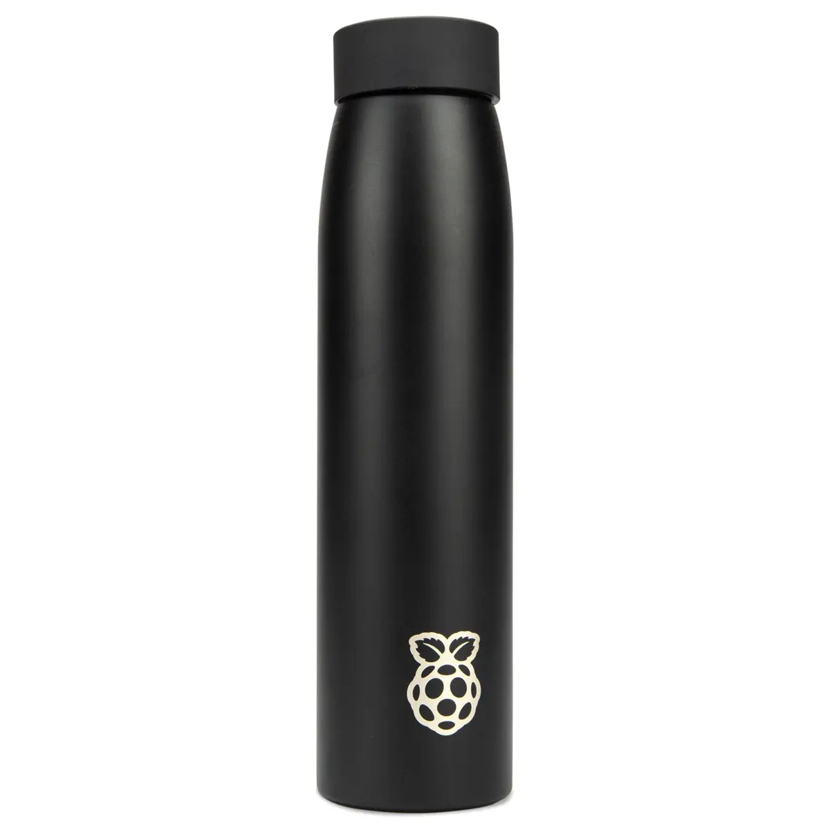 Elegante garrafa em aço inoxidável de 375 ml de parede dupla com borracha PP e tampa de rosca de plástico. O corpo da garrafa é preto fosco com o clássico logotipo Raspberry Pi gravado a laser na lateral. É compacto o suficiente para caber na maioria das bolsas, no porta-luvas do seu carro ou até mesmo em um porta-copos.