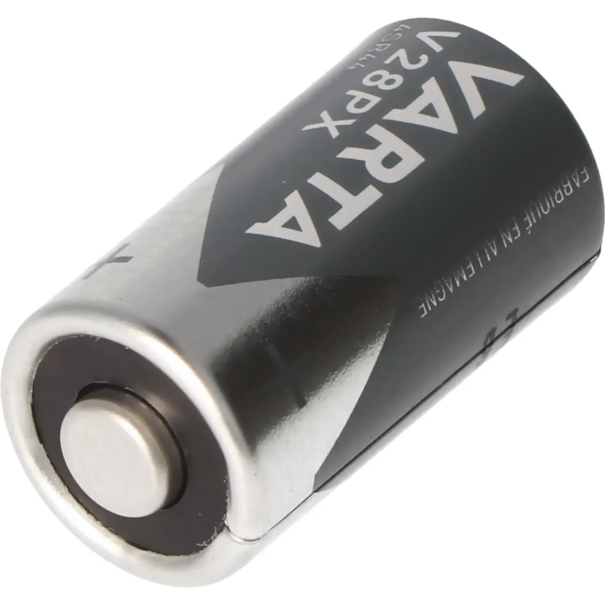 Pilha do tipo V28PX / 4SR44, com tecnologia óxido de prata-zinco e 6.2V, frequentemente usada em câmaras fotográficas e outros pequenos aparelhos eletrónicos.