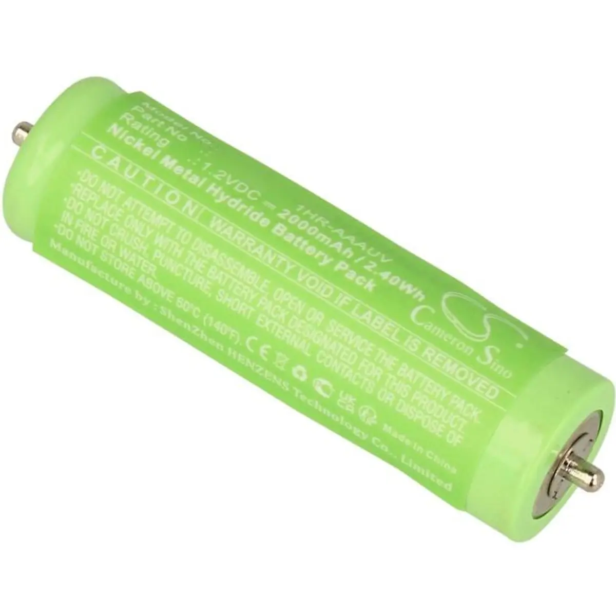 Esta bateria recarregável de Ni-MH para máquinas de barbear proporciona 1,2 V de voltagem e 2 Ah de capacidade, sendo compatível com pilhas AA/LR06. Composição Ni-MH, recarregável, dimensões de 54 mm de comprimento por 14 mm de diâmetro, oferece solução de substituição prática e económica para dispositivos portáteis, ideal para substituir pilhas descartáveis.