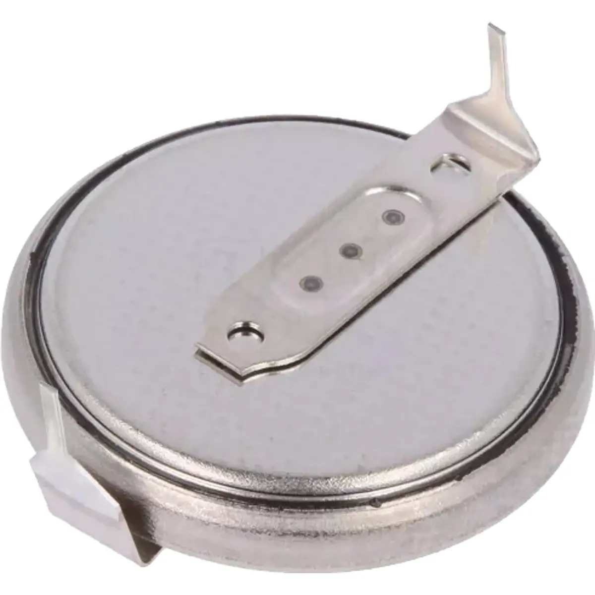 Pilha de lítio BR2032, 3V, 200mAh, não recarregável, para circuitos impressos. Compatível com montagem horizontal, diâmetro Ø20 mm e espessura 3,2 mm, suporta temperatura de trabalho entre -30°C e 80°C. Ideal para substituir baterias em dispositivos de baixo consumo em PCB, proporcionando uma solução estável e de fácil substituição.