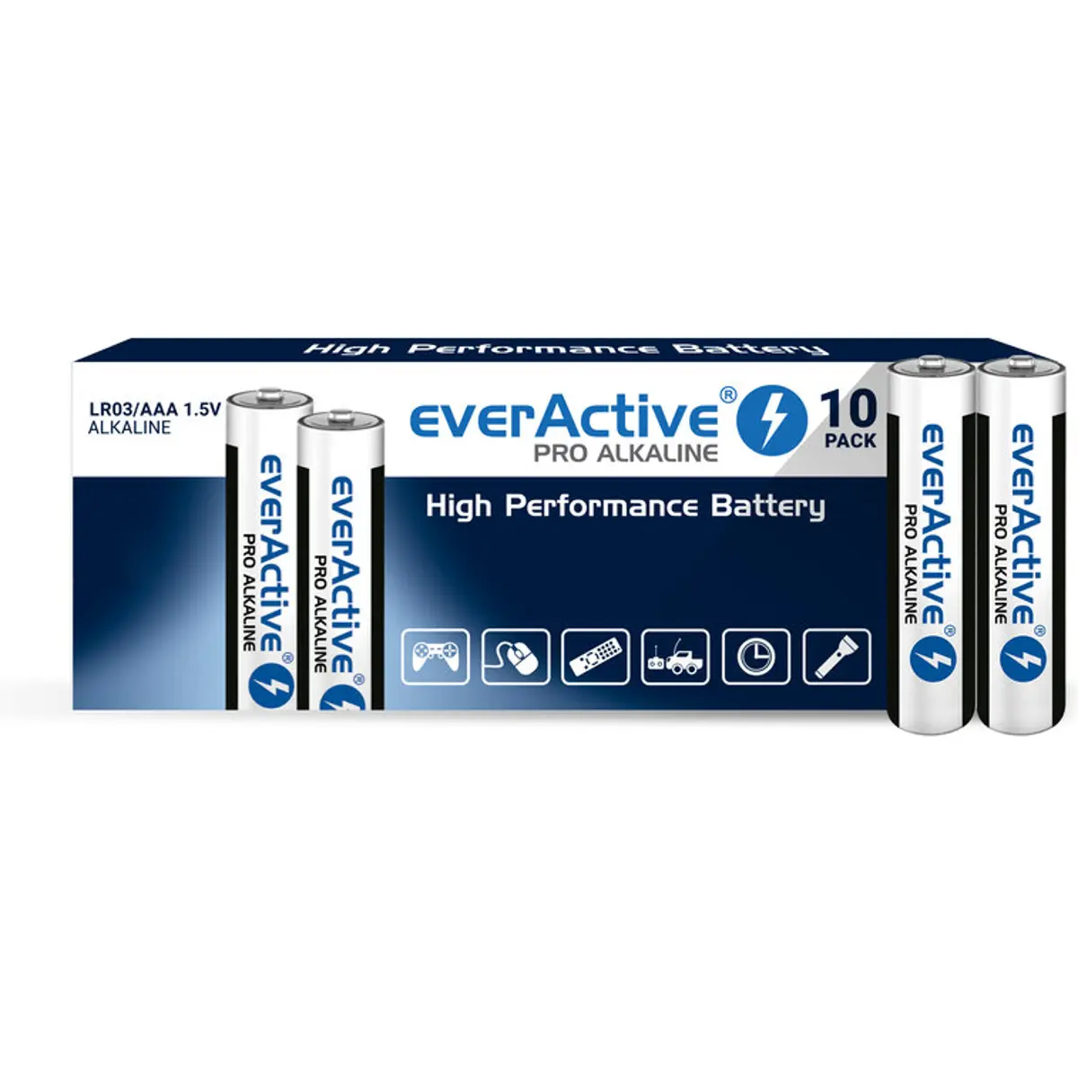 PRO Alcalina - a linha de baterias alcalinas mais avançada everActive apresenta um desempenho claramente aprimorado em dispositivos com maior consumo de energia.