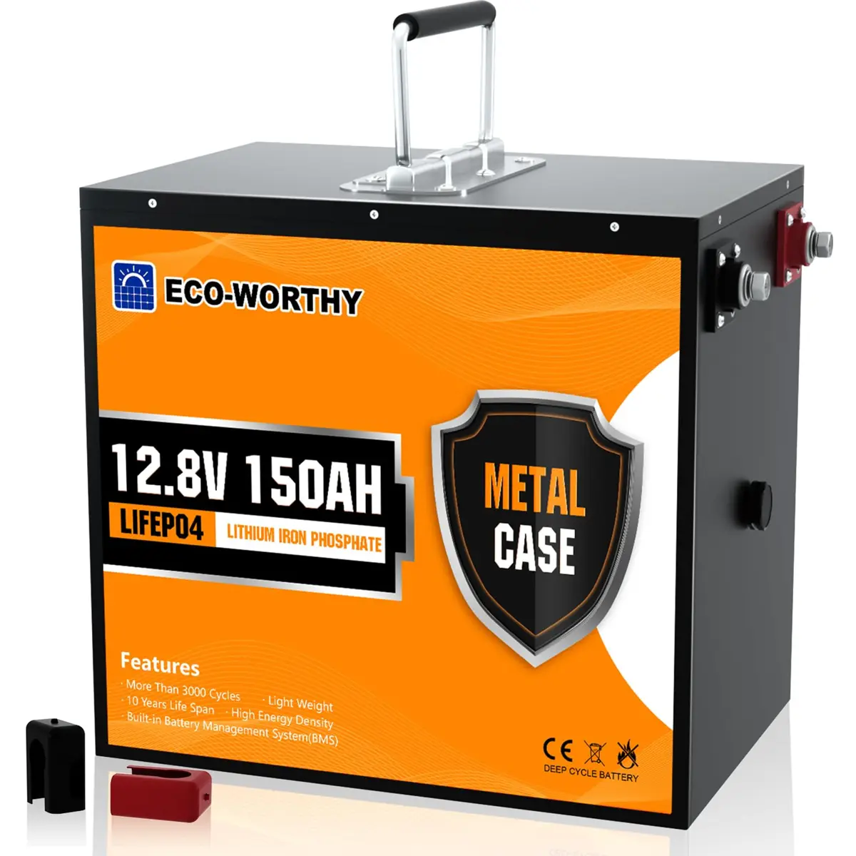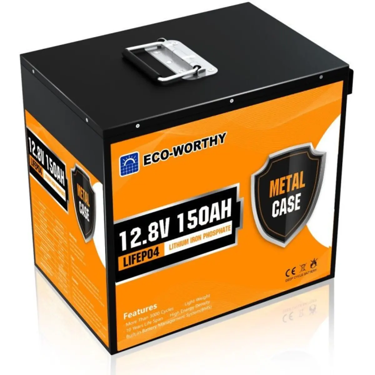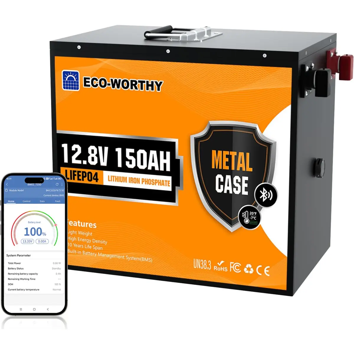 ECO-WORTHY - Bateria de Lithium (LiFePO4) BMS c/ caixa metálica + Bluetooth - 12.8V 150A (1920Wh)
