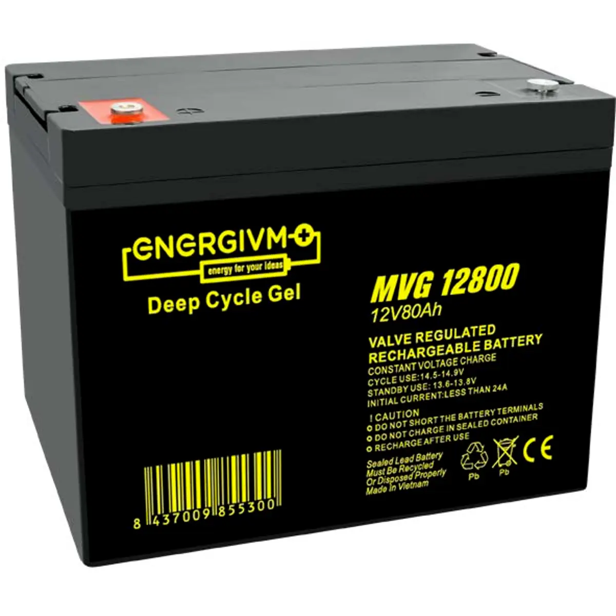 EnergiVM MVG12800 - Bateria de Chumbo (Pb) 12V 80Ah Deep Cycle GEL