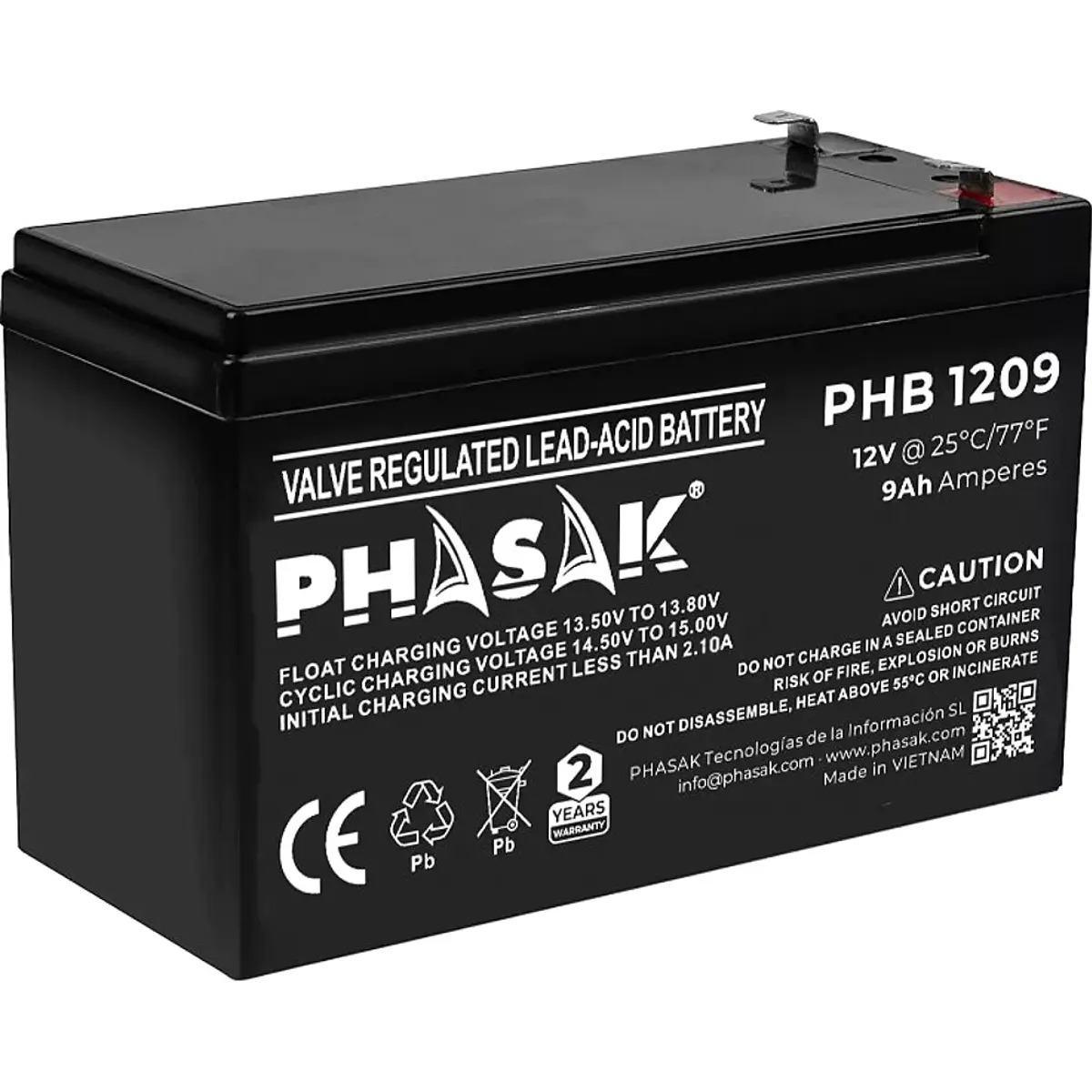 A Phasak PHB 1209 é uma bateria selada de chumbo-ácido (VRLA) de 12V e 9Ah, concebida para garantir autonomia fiável em sistemas SAI/UPS, segurança, CCTV e iluminação de emergência. A sua construção AGM, livre de manutenção e com baixa autodescarga, assegura estabilidade, segurança e longa vida útil em aplicações de uso contínuo.