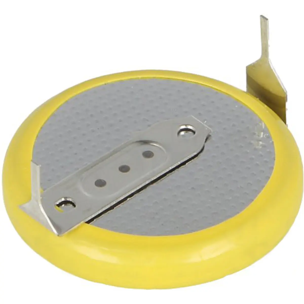 Pilha de lítio não recarregável com LiMnO2, 3V, 230 mAh, diâmetro Ø20 e espessura 3,2 mm, montagem horizontal e distância entre pinos de 20,5 mm. Possui ligação de 2 pinos para soldar, oferecendo energia estável em formatos compactos para dispositivos que exigem duração prolongada e integração simples em circuitos.