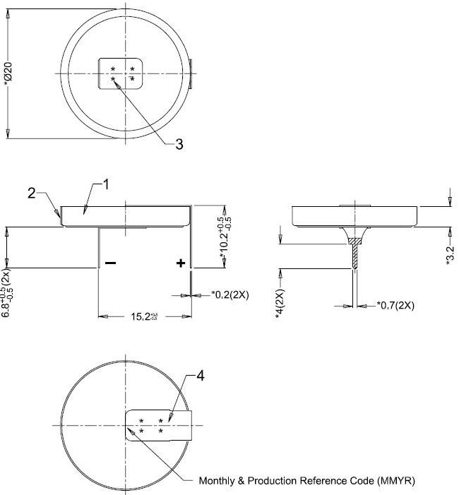 Pilha de lítio CR2032 não recarregável com LiMnO2, fornece 3V e 230mAh de capacidade nominal. Possui ligação de 2 pinos, montagem horizontal, peso de 2,95 g, dimensões Ø20x3,2 mm e distância entre pinos de 15,2 mm. Ideal para dispositivos eletrónicos de pequeno porte que exigem uma fonte de energia estável, como relógios, sensores e equipamentos portáteis.