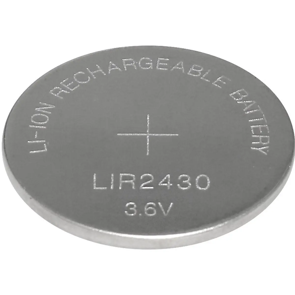 Pilha de lítio recarregável em formato de botão, com tecnologia de dióxido de manganês de lítio recarregável, tensão de 3,0 V e capacidade de 60 mAh. Possui dimensões Ø24,5 x 3,0 mm e o modelo LIR2430.