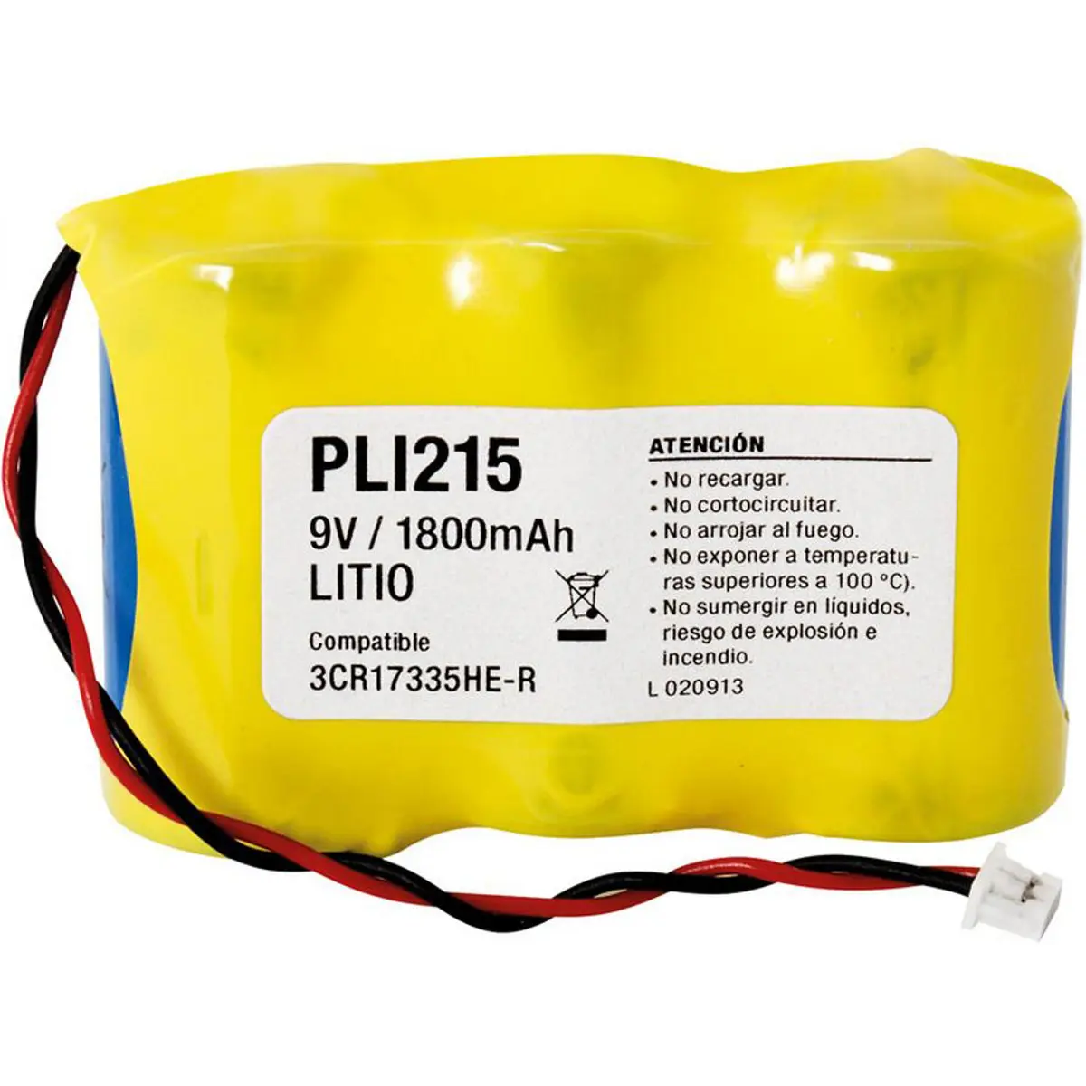 Esta pilha de lítio de 9V utiliza três células CR17335 (2/3A) com tecnologia dióxido de magnésio-lítio, oferecendo 1800mAh de capacidade. Compacta (51x17x33,5 mm) e com ficha com fios, apresenta ligação rápida e fiável. Compatível com 3CR17335HE-R, é adequada como substituição para dispositivos que exigem energia estável, autonomia elevada e funcionamento confiável em condições diversas, incluindo sensores, alarmes e equipamentos portáteis.