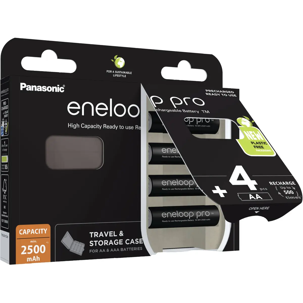 Panasonic Eneloop BK-3HCDEC - Baterias recarregáveis AA 2500mAh [4 unid.] + caixa de armazenamento