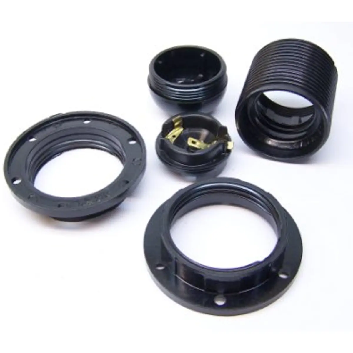 Conjunto para iluminação com rosca E27, composto por camisa E27 roscada, miolo E27 e 2 anilhas E27 pretas. Permite montagem precisa de luminárias com rosca E27, oferecendo encaixe estável e acabamento preto uniforme. Ideal para instalações domésticas que necessitam de peças discretas e fáceis de montar.
