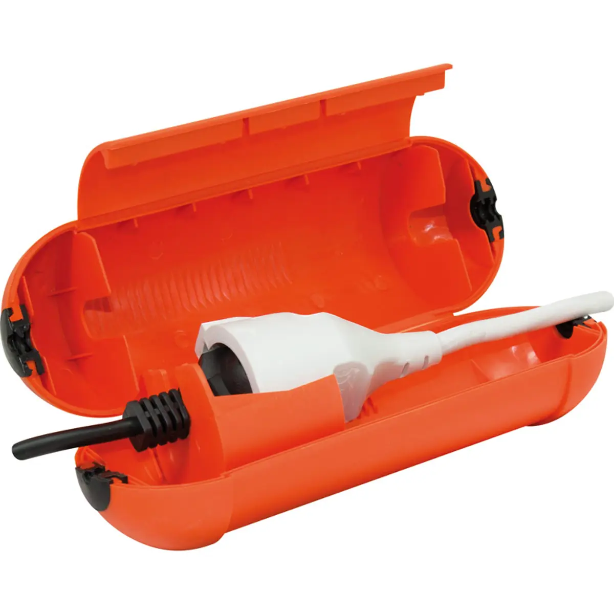 A cápsula de proteção estanque IP44 para ligações elétricas é concebida para uso exterior, protegendo contra humidade e evitando que os cabos se desliguem. Deve ser instalada num local onde não haja risco de inundação; a cor disponível é laranja. Cabos não incluídos.