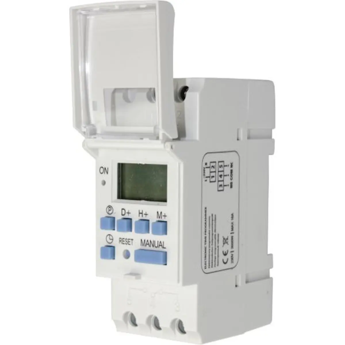Dispositivo permite a economia de energia elétrica num modo fácil, ideal para instalar em qualquer casa ou empresa. Projectado para montagem em calha DIN. Liga e desliga em um intervalo especificado. Display LCD e configuração simples de configurações. 16 programas permitem configurações adaptadas às necessidades individuais com uma base diária ou semanal. Um dispositivo perfeito para controlar iluminação, caldeiras eléctricas , motores e bombas.