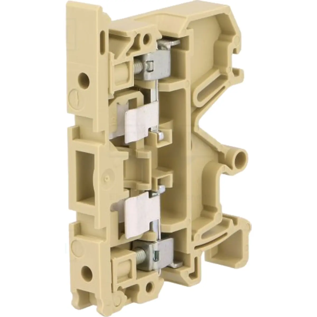 Porta-fusível de 5×20 mm para calha DIN, adequado a instalações elétricas industriais. Compatível com conector 1 via e 2 ligadores e terminais de parafusos, com cor bege. Suporta 500 VAC e 6.3 A, cabos até 4 mm². Montagem em carris TS32 ou TS35. Fabricado em poliamida, com temperatura de funcionamento de -50 °C a 100 °C. O fusível de 5×20 mm não está incluído, incluindo apenas o corpo do porta-fusível.