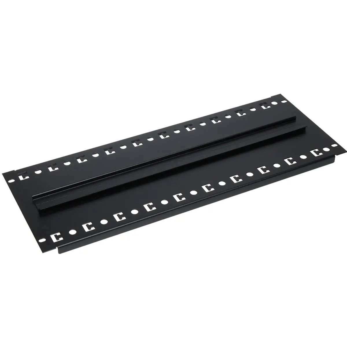 A chapa de montagem é concebida para a montagem de dispositivos sobre a calha DIN na parte traseira do armário Rack 19”. A ligação da calha à chapa garante a estabilidade mecânica do dispositivo montado, além da possibilidade de adicionar os cabos de alimentação e de sinal à chapa de montagem.