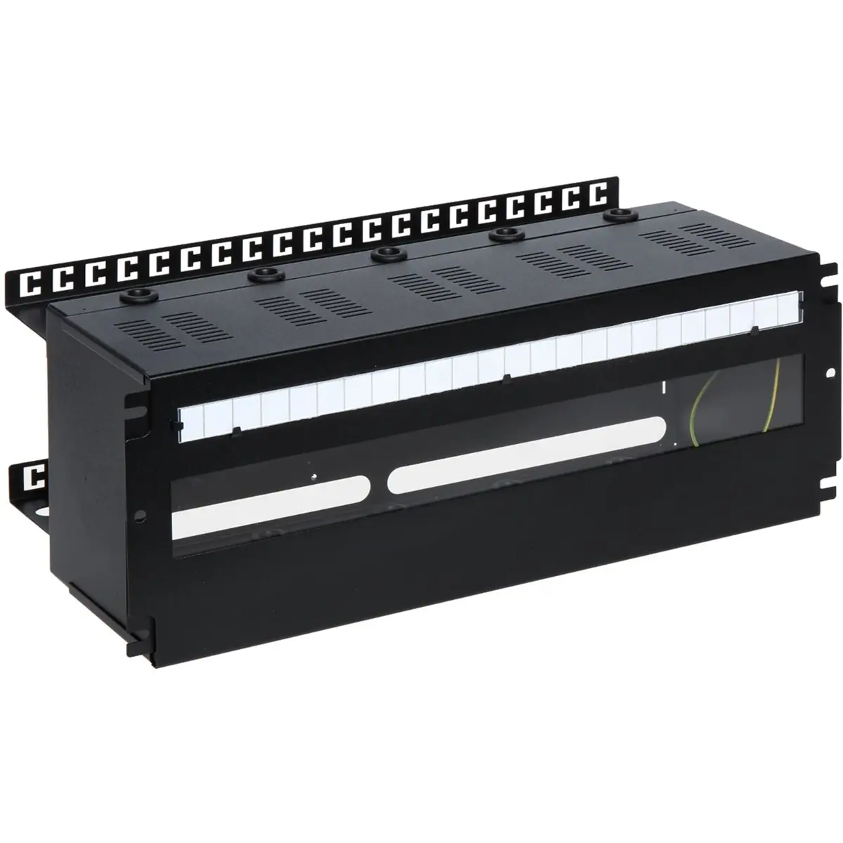 A caixa com calha DIN para armários RACK é concebida para a montagem de dispositivos que estão nas caixas DIN em armários RACK de 19". A caixa tem uma calha DIN com um comprimento de 24x1S. A altura de um módulo montado não pode exceder 160mm.