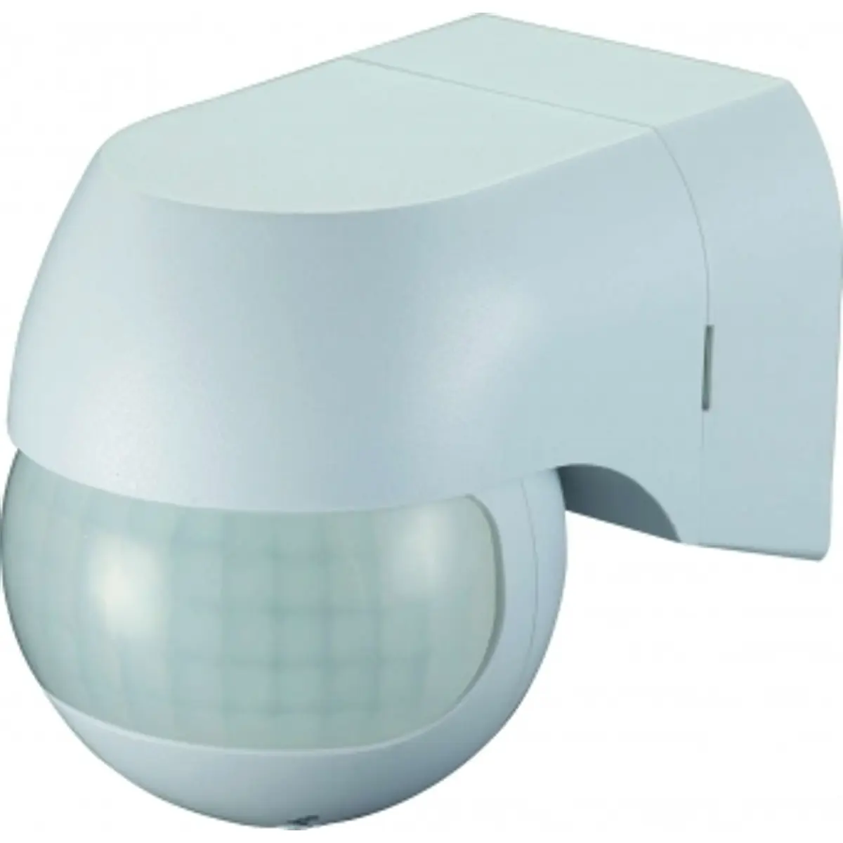 Detector de movimento saliente de 180º, com funções de temporizador e crepuscular. Índice de Protecção IP44, detecção até 12mts (altura de instalação de 2,5mts).