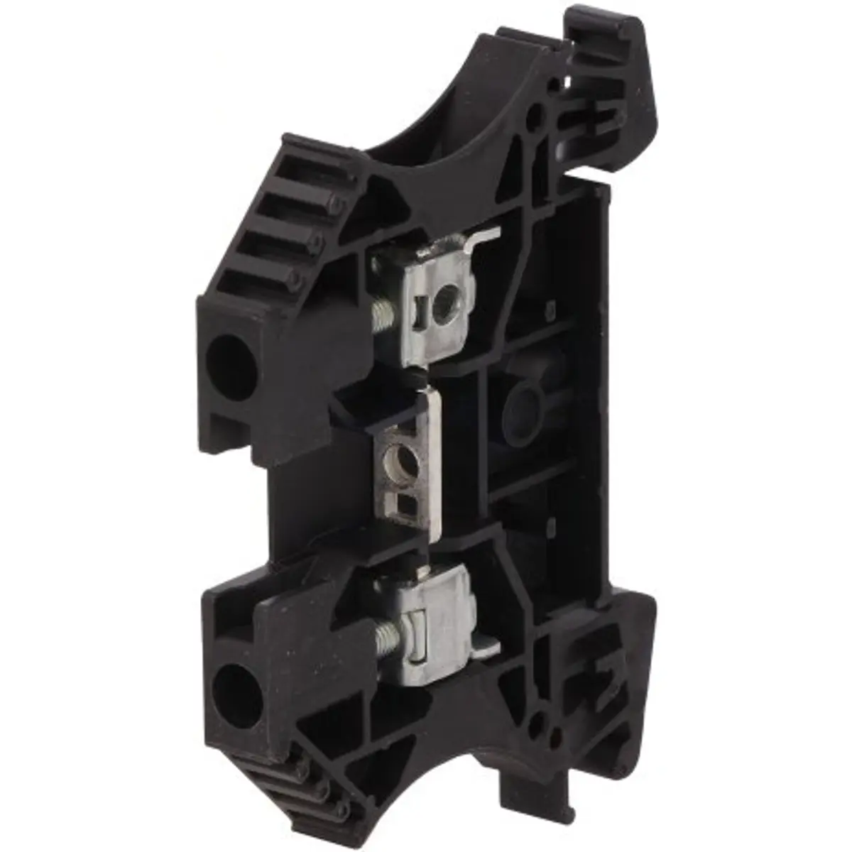 Esta borne de ligação para calha DIN oferece uma ligação segura em quadros elétricos, com uma via e dois terminais. Possui cor preta, montagem por parafusos e suporta cabos de 4 mm². Com largura de 6,1 mm, admite tensão até 800 V e corrente até 32 A, funcionando até 125 °C. Ideal para instalações elétricas em calhas DIN, oferecendo fiabilidade e montagem compacta.