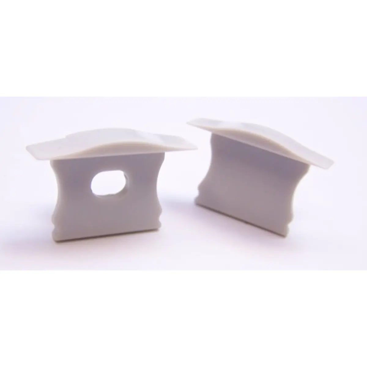 Conjunto de topos compatíveis com perfis de alumínio de embutir para fita de LEDs, com difusores opaco e transparente. Compatível com os modelos 302-1584 e 302-1609, oferece acabamento limpo e proteção das extremidades, ideal para instalações com iluminação LED em móveis, prateleiras e iluminação sob armários. Pacote em par para montagem rápida.