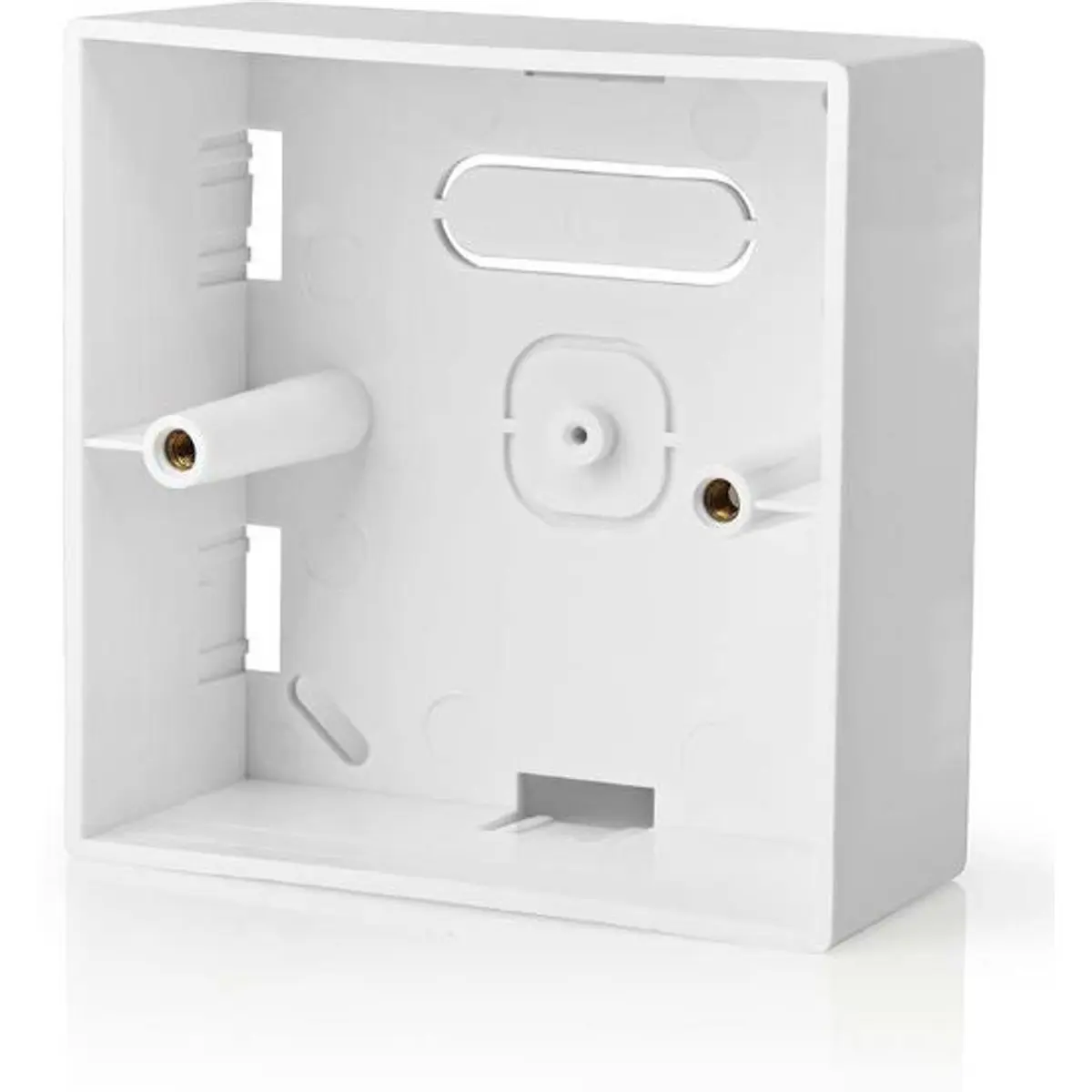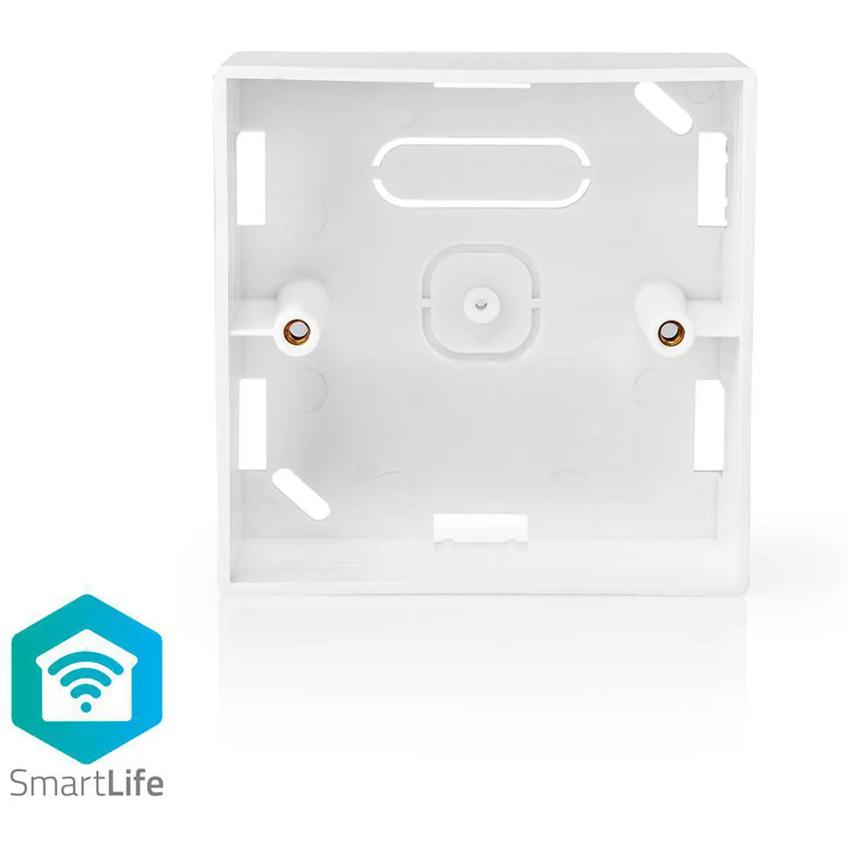 Esta caixa de embutir/superfície da Nedis® para montagem dos comutadores inteligentes Nedis® SmartLife possui várias aberturas para facilitar o acesso aos cabos e uma profundidade confortável de 35 mm para fácil instalação.