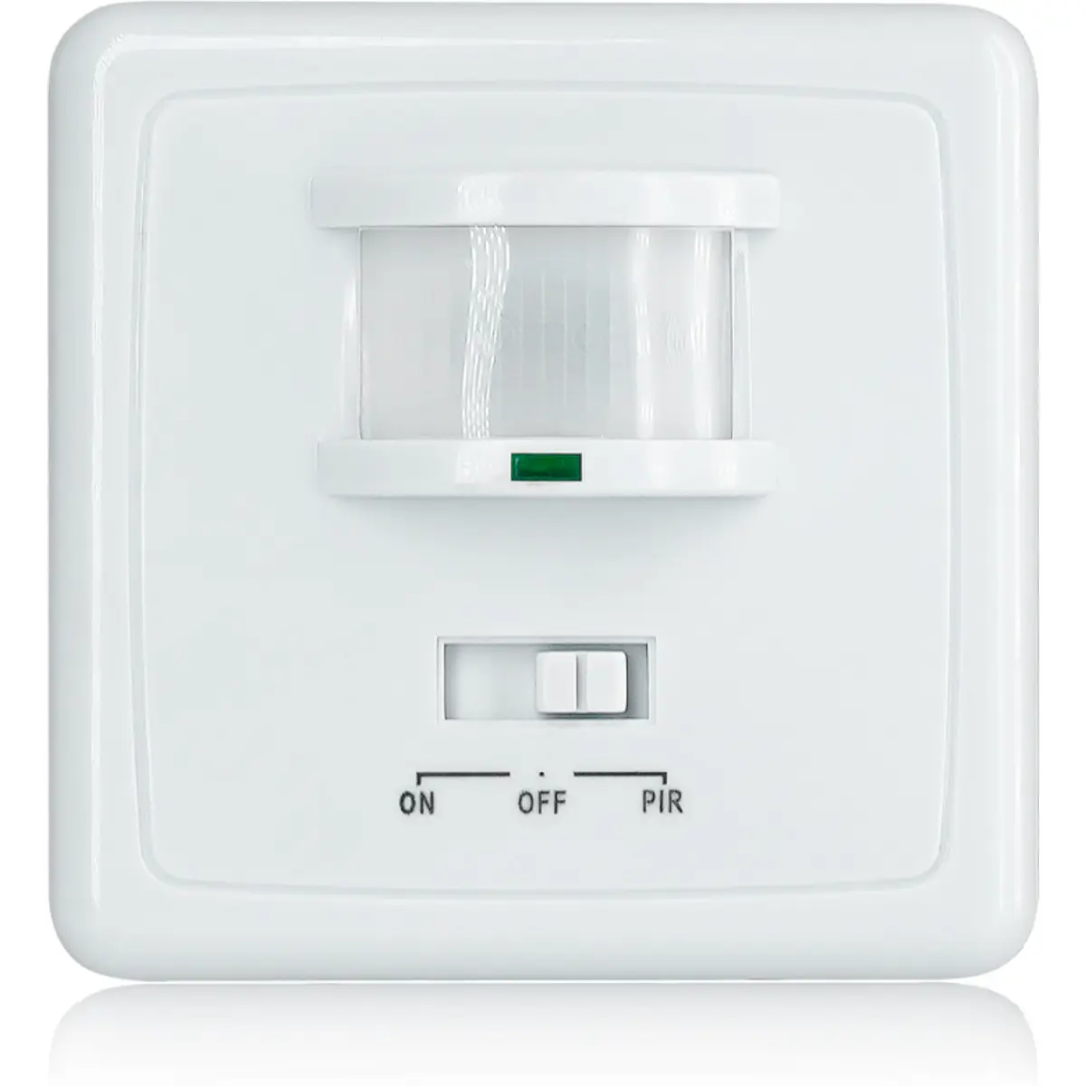 Sensor de movimento para embutir com ângulo de detecção de 160°, compatível com caixas de 79x79mm e instalação de 3 fios. Regula tempo, luz e sensibilidade, detetando presença até 9 metros. Suporta luz ambiente entre 3 e 2000 lux, funciona entre -20°C e 40°C e consome até 1200W em incandescente e 300W em LED. Ideal para iluminação automática, discreta e eficiente em interiores, com instalação simples e fiável.