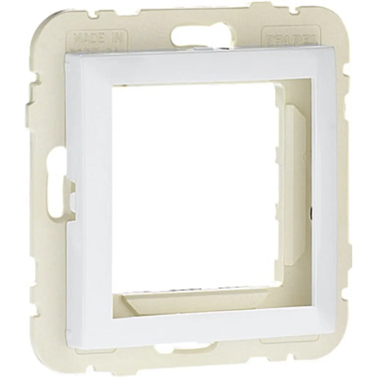 Aro Central Universal para instalação de aparelhos semimontados da série Quadro 45 em caixas de aparelhagem embutidas.