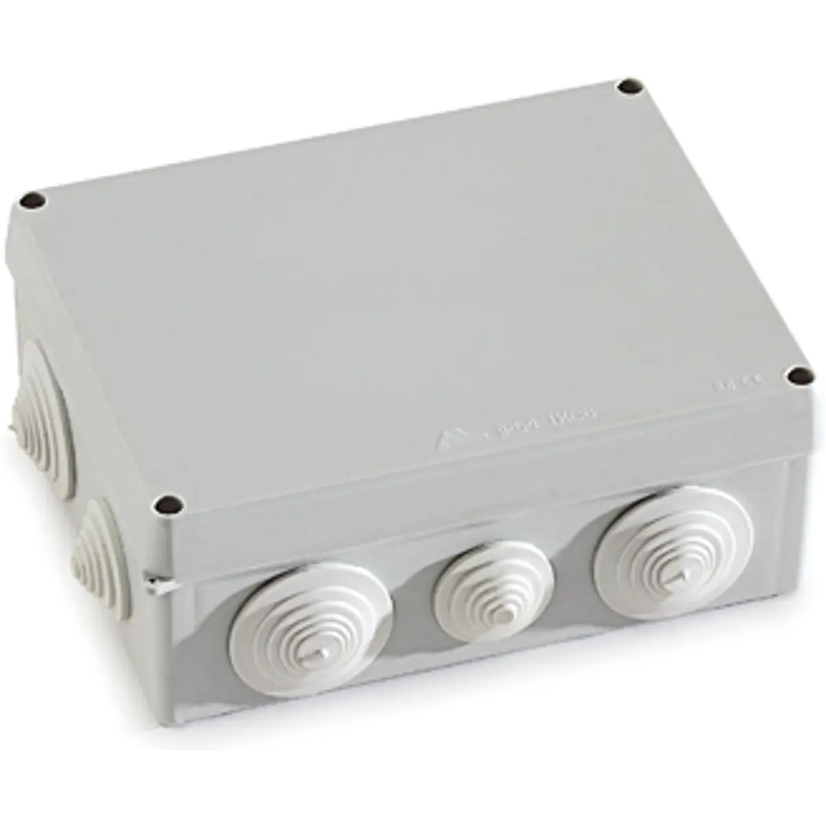 Caixa de derivação estanque para aplicações exteriores, em PP cinza RAL7035 com vedante EPDM. Oferece proteção IP54 e grau IK08, com tampa fixada por parafusos de 1/4 de volta para fecho e selagem. Tensão de isolamento até 600 V e classe de isolamento II, suportando -5 a 60 °C. Adequada para montagem superficial em muros não combustíveis, conforme EN 60670-1, ideal para instalações elétricas exteriores que exigem proteção contra poeira, água e condições climáticas adversas.