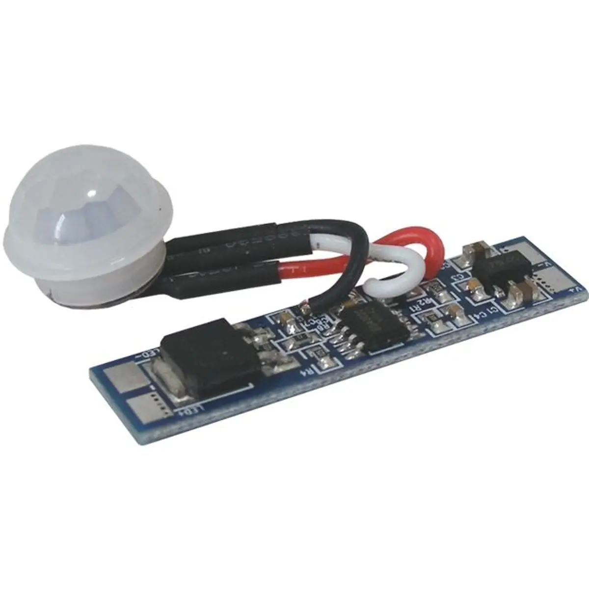 O sensor PIR foi concebido para montagem direta no perfil AL. Atua automaticamente quando uma pessoa está a até 2 metros e permanece ligado enquanto a distância persistir. Desliga aproximadamente 40s depois que a pessoa deixou o sensor. Compatível com tensões de operação entre 12 e 24 VDC e com dimensões da PCB de 40x10x6 mm, oferecendo uma solução discreta para controlo de fitas de LED em perfis com alimentação variável.