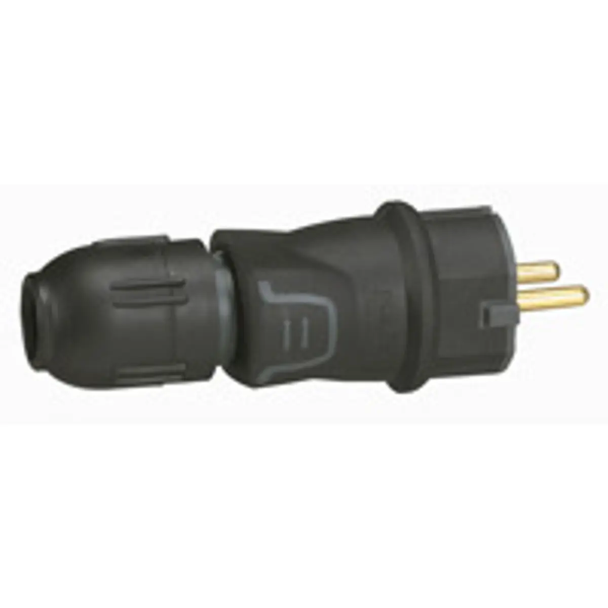 Legrand 050340 - Ficha schuko macho 250VAC 16A 2P+T borracha preta IP44 com bucim