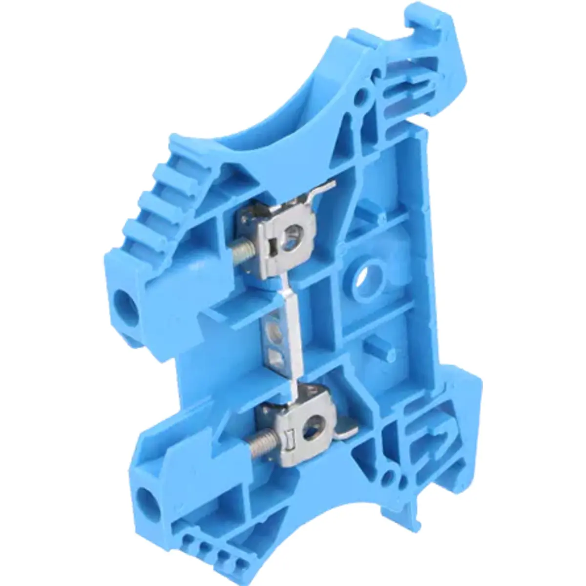 Borne de ligação para calha DIN de 2,5 mm², com 1 via e parafusos de montagem. Compatível com carris TS35, oferece corrente nominal de 24 A e tensão nominal de 800 V, suportando temperatura de serviço até 125 °C. Possui duas braçadeiras e uma faixa para facilitar a fixação segura de cabos. Ideal para instalações elétricas em quadros de distribuição, proporcionando ligação estável, fiável e montagem rápida.