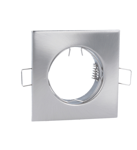 Aro quadrado fixo com mola para lâmpadas GU10/MR16 80x80mm (Ø65mm) - aço escovado