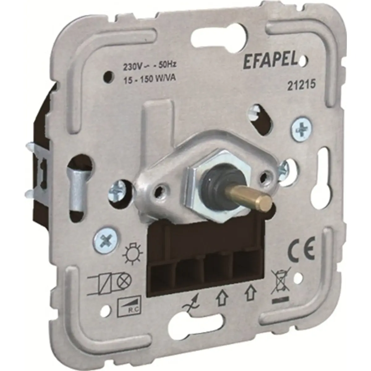 Regulador eletrônico para lâmpadas de baixo consumo, comutável via botão ON/OFF e variação rotativa do fluxo luminoso. O dispositivo opera de forma silenciosa com o mecanismo MEC 21 e utiliza o regime de corte de fase descendente (trailing edge). Compatível com várias cargas até 150W (resistivas, RC, CFL, LED) incluindo dimmáveis; ideal para gestão eficiente de iluminação, com controlo por botão e funcionamento estável em diferentes cargas.