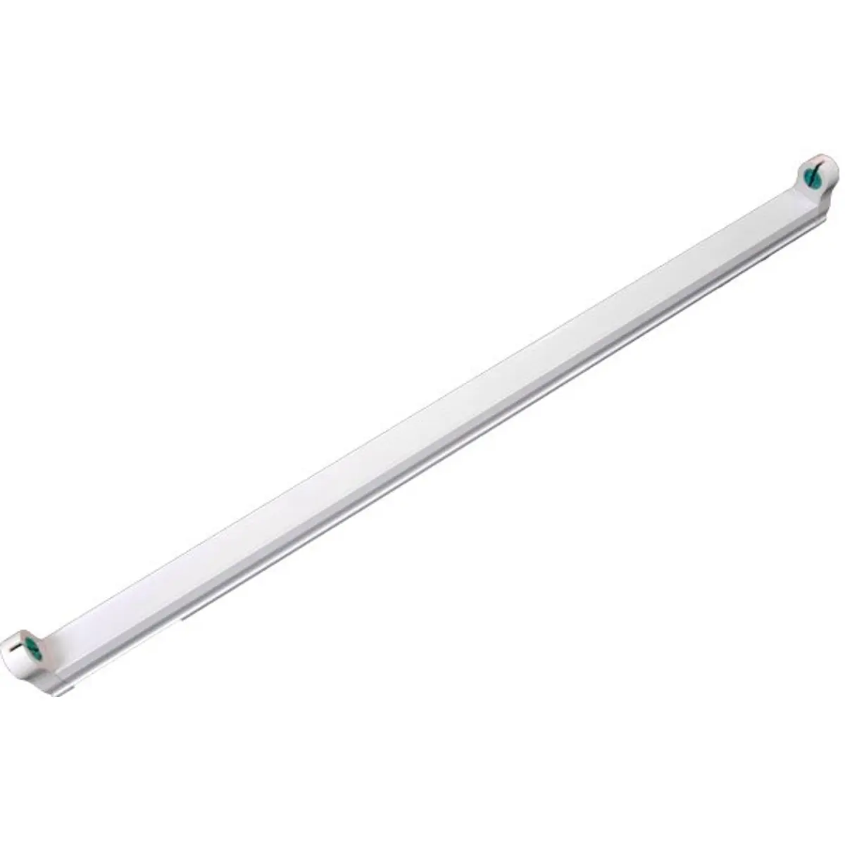 Alojamento industrial simples para tubo LED T8 de 120 cm, adequado para uso interior. Estrutura metálica com ligação unilateral a 230 VAC, concebida para suportar o tubo LED de 120 cm (o tubo não está incluído). Ideal para instalações de iluminação em ambientes industriais ou comerciais, oferecendo montagem estável no teto ou na parede, durabilidade e facilidade de instalação e manutenção.