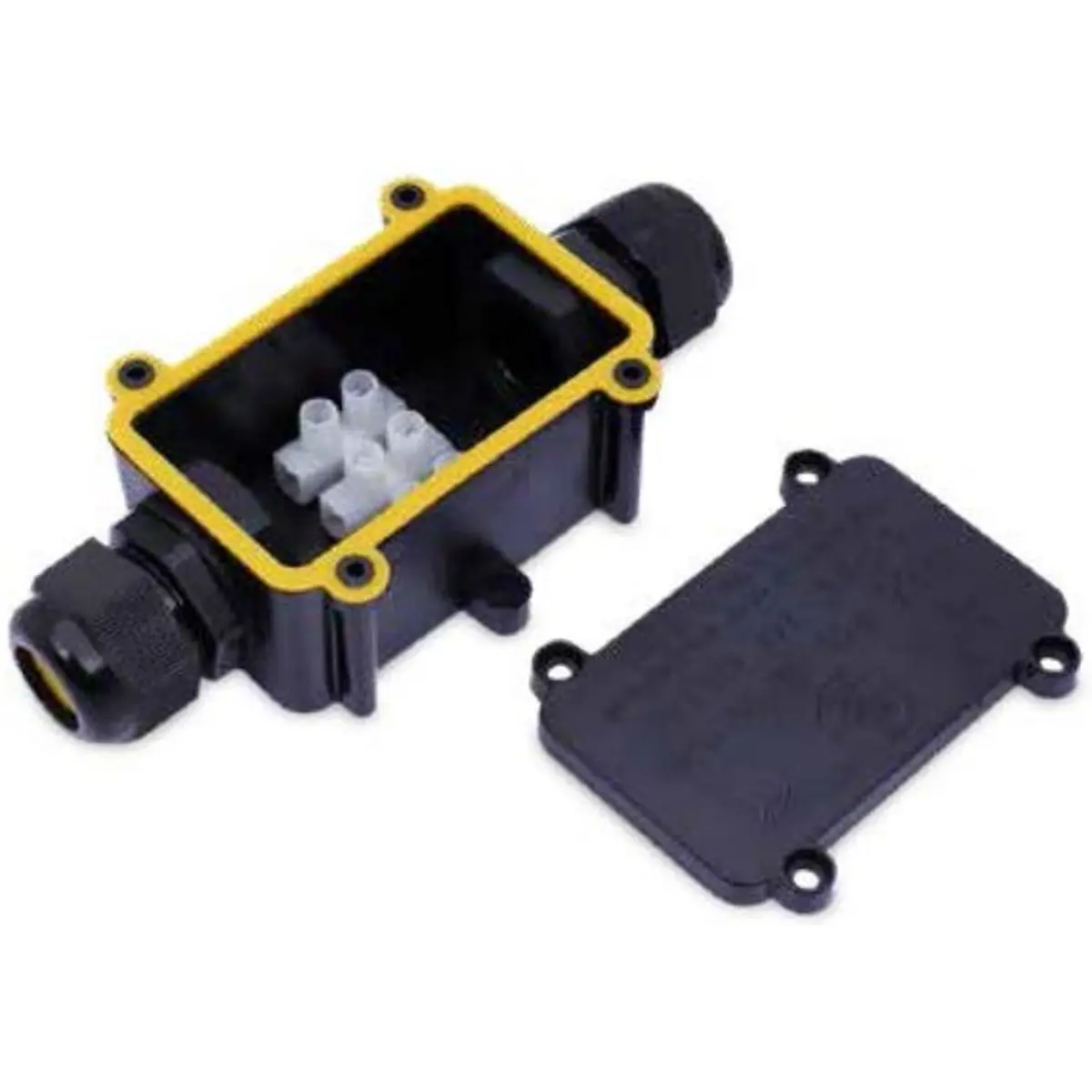 Caixa de derivação estanque com classificação IP68, ideal para exteriores. Possui bucins para uma entrada e uma saída, aceita cabos até Ø8 mm e inclui uma caixa de junção de 3 pólos. Dimensões: 138x43x36 mm, fornecendo proteção impermeável contra água, poeira e intempéries. Perfeita para ligações elétricas seguras em ambientes externos, com montagem simples e durável, proporcionando organização de cabos e isolamento adequado em instalações residenciais ou industriais.