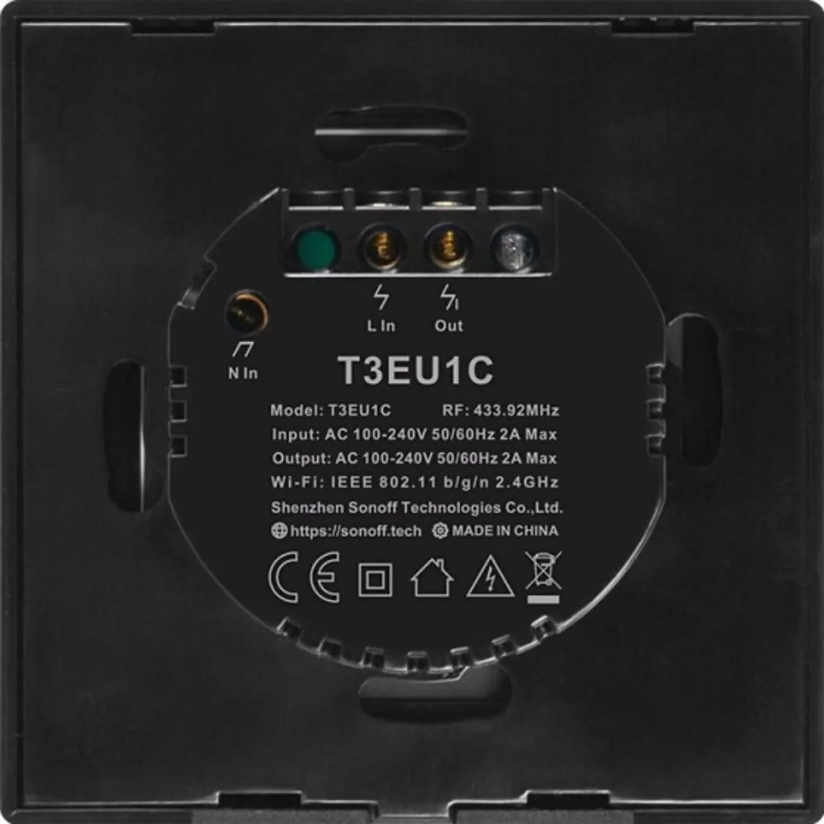 Sonoff T3EU1C-TX - Interruptor (1 Gang) Smart Wifi+RF touch em vidro de encastrar - preto