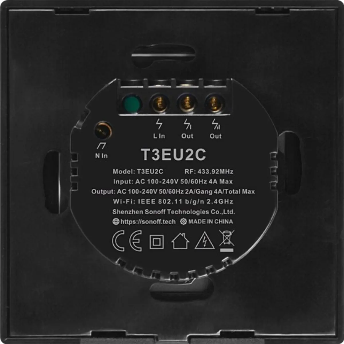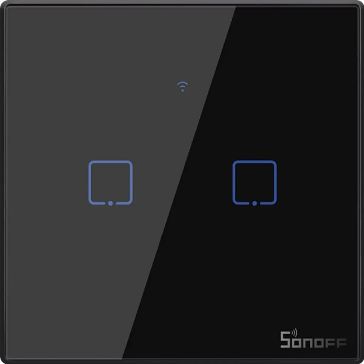 Sonoff T3EU2C-TX - Interruptor duplo (2 Gang) Smart Wifi+RF touch em vidro de encastrar - Preto